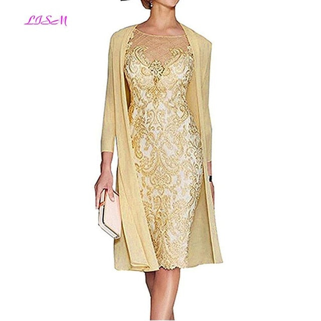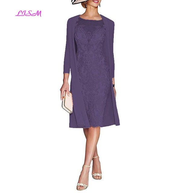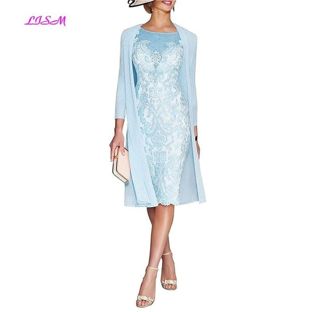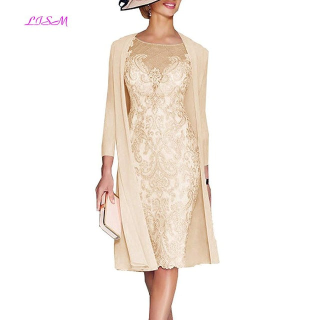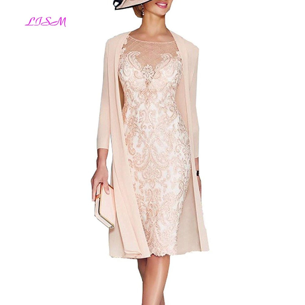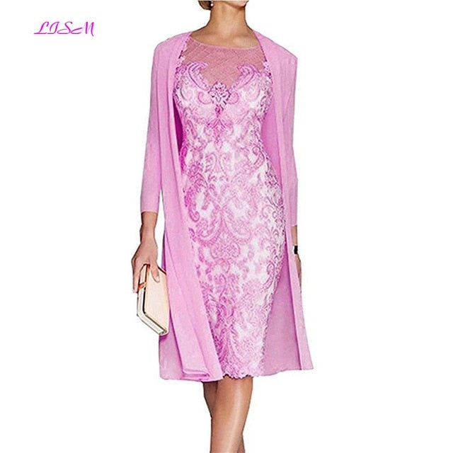 Light Pink Women's Mother of The Groom Dresses Tea Length Lace Mother of the Bride Dress with Jacket Formal Evening Gowns